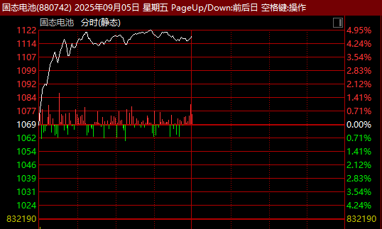 新能源观念股早间全体大涨,固态电池目标最为生动,板块指数放量大涨近5%,创3年半新高,进一步靠近史乘最高点。板块内个股掀涨停潮,派特尔30%涨停,金银河开盘仅约1分钟就笔直20%涨停,誉辰智能、华盛锂电等众股亦20cm封板,天赐质料、众氟众等逾20股涨停或涨超10%。