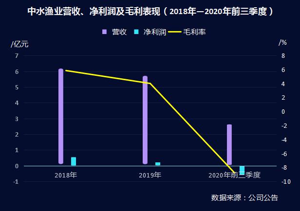 2020年半年报显示,因为新冠肺炎疫情对出卖畅通症结和消费商场形成负面进攻,上半年金枪鱼产物商场出卖及商业放缓,中水渔业谋划低迷,其金枪鱼交易量价齐跌、库存弥补,仅告终营收1.16亿元,同比下跌36.78%,毛利率跌至-4.29%,同比降落11.35%。