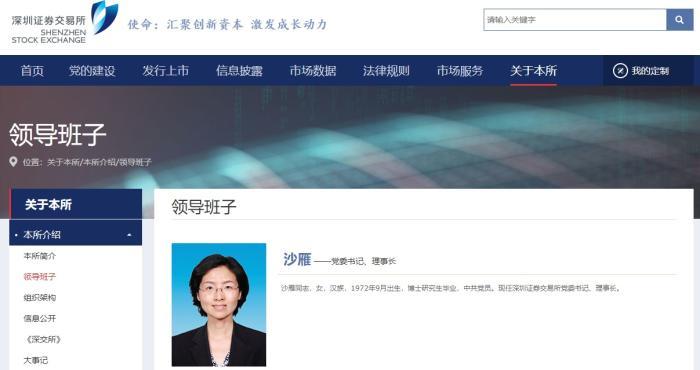 深圳证券往还所官网“头领班子”栏目显示,此前已控制深圳证券往还所党委书记的沙雁,出任深圳证券往还所理事长。