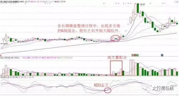 比方,正在永久横盘后,凌云股份(600480)正在2017年3月27日-3月29日K线图映现了众方炮的图形;5日、10日、20日均线从粘合状况造成众头陈列;成交量映现放量,而且众方炮中的阳线放量、阴线缩量调剂;正在众方炮映现之前,KDJ正在超卖区域于3月22日映现金叉。以上迹象都说明后市股价可以会转势上涨。