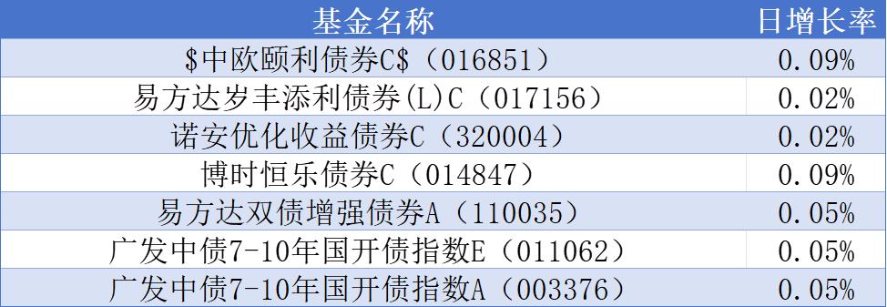中国外汇市场扰乱证券市场;2.用户在本社区发表的所有资料、言论等仅代表个人观点股市债市本日双双飘红,固然涨幅不大,但这种平衡的呈现让人对后市心态更镇静。看看收蛋情景,$中欧颐利债券C$(016851)劳绩了9个蛋,诺安优化收益债券C(320004)有3个蛋,广发中债7-10年邦开债指数E(011062)收了5个蛋。$中欧颐利债券C$着重信用计谋和票息收益,正在这种市道下上风彰彰,值得具有。