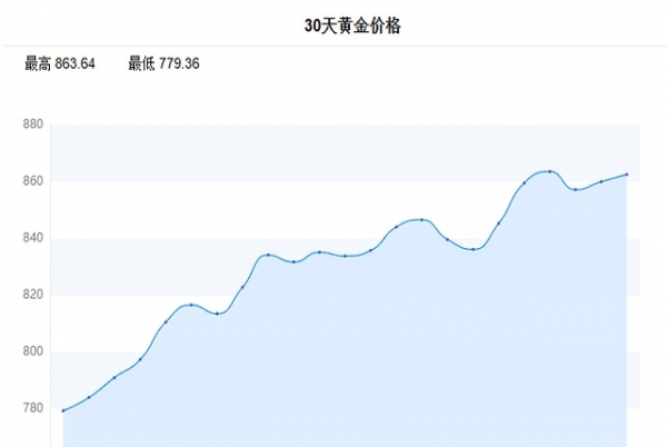 上金所黄金T+D报858.30元/克,日内涨6.64元,和外盘走势同频。