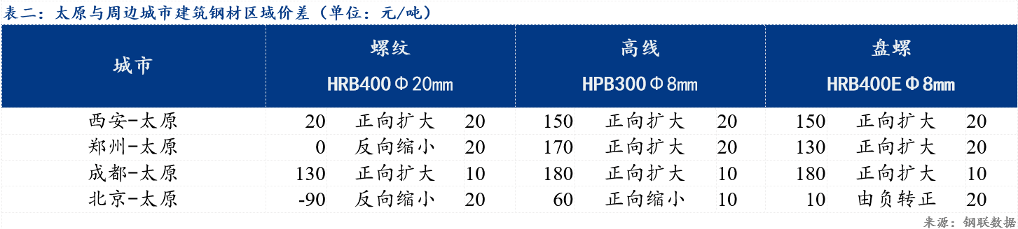 从区域价差来看,今日周边商场兴办钢材代价上涨,现太原商场螺纹钢代价低于西安商场代价20元/吨 ,低于郑州商场0元/吨,低于成都商场代价130元/吨,高于北京商场价90元/吨 ,与昨日比拟螺纹价差正向增加。盘螺代价与西安商场价差正在150元/吨,与郑州商场价差130元/吨,与成都商场价差正在180元/吨,与北京商场价差正在10元/吨 ,省内资源外发驱动力趋强。
