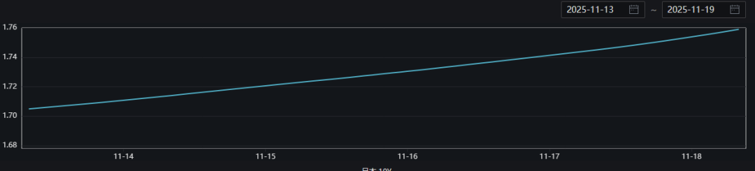 日本10年期邦债收益率走势图(11月13日~19日) 邦债收益率与邦债价值走势相反,图片出处:wind