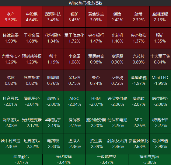 水产观点整体产生,邦联水产等近10股涨停,中水渔业今日开盘一字涨停,完成4天4板。