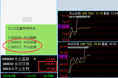 昨日9:55沪深一共8只涨停股,6个一字板,尚有两个自然涨停,便是咱们昨天早上公然提示的300313 .300692