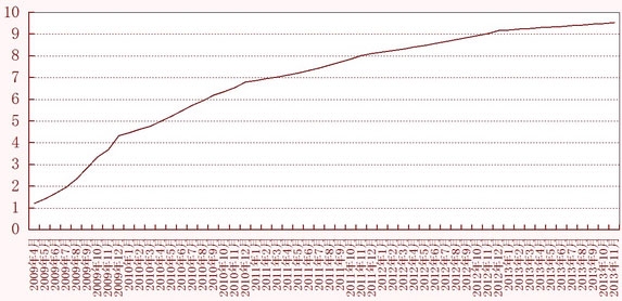 上图为徐教员2009年4月-2013年11月净值图(该资金弧线图由奇获投资供给)