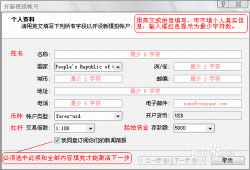 外中各项能够不填确凿的局部消息,填完后,你务必选中“我领受订阅你们的讯息简报”,然后本事点“下一步”按钮不绝举行注册。
