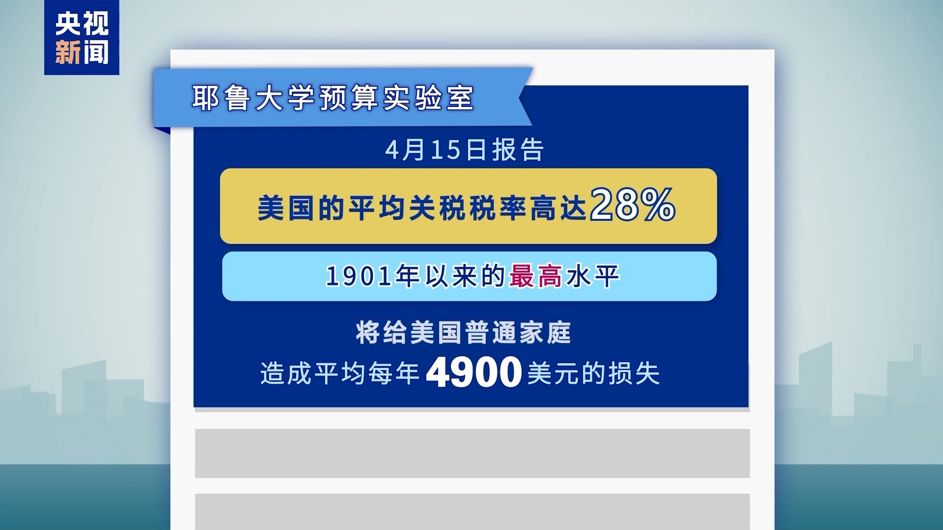 4月15日,正在美邦与中邦、英邦实现公约前,耶鲁大学预算尝试室也曾颁布过一份呈报。这份呈报称,美邦的均匀合税税率当时高达28%,为1901年往后的最高程度。遵照当时的合税税率,将给美邦浅显家庭形成均匀每年4900美元的失掉。