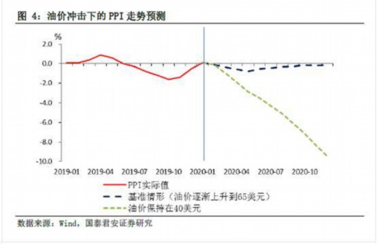 原油价值大跌,也会减轻交通本钱,有利于局限工业品出厂价值指数(PPI)和住民消费价值指数(CPI)。假如终年油价庇护正在40美元/桶,比拟2019年的60美元阁下降低较众,中邦2020年PPI要比之前估计低4个百分点,为-4.1%;CPI要比之前估计低0.3百分点,为3.7%。