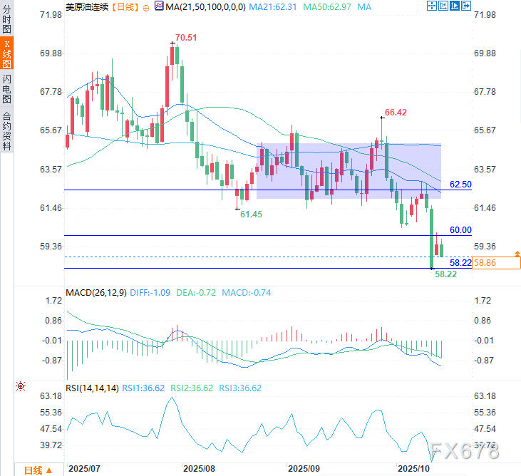上周晚些时辰,特朗普总统恐吓对中邦出口商品征收100%闭税导致油价暴跌,一度达近五个月低点(58.22美元/桶)。跟着华盛顿与北京酬酢联系崭露解冻迹象,看空心绪有所缓解。