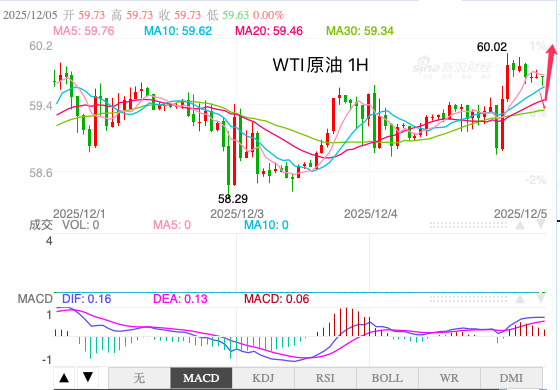 原油短线H)走势区间下沿获撑持向上,仍连结正在区间内。早盘油价正在60合口回落,均线编制发散向上,但短线客观趋向目标属于区间内上行趋向。动能方面由胶着转为上涨占上风。估计日内原油走势希望打破区间向上,空间有限。