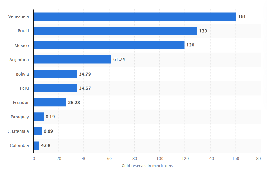 据Statista数据,截至2024年6月,委内瑞拉重心银行持有161吨黄金,正在拉美区域排名第一。