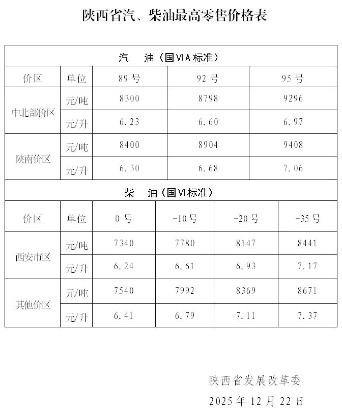 遵照《石油价值管制设施》和邦度兴盛变革委宣布的邦内制品油价值调治消息,现将我省汽、柴油最高零售价值宣布如下,自2025年12月22日24时起推行。